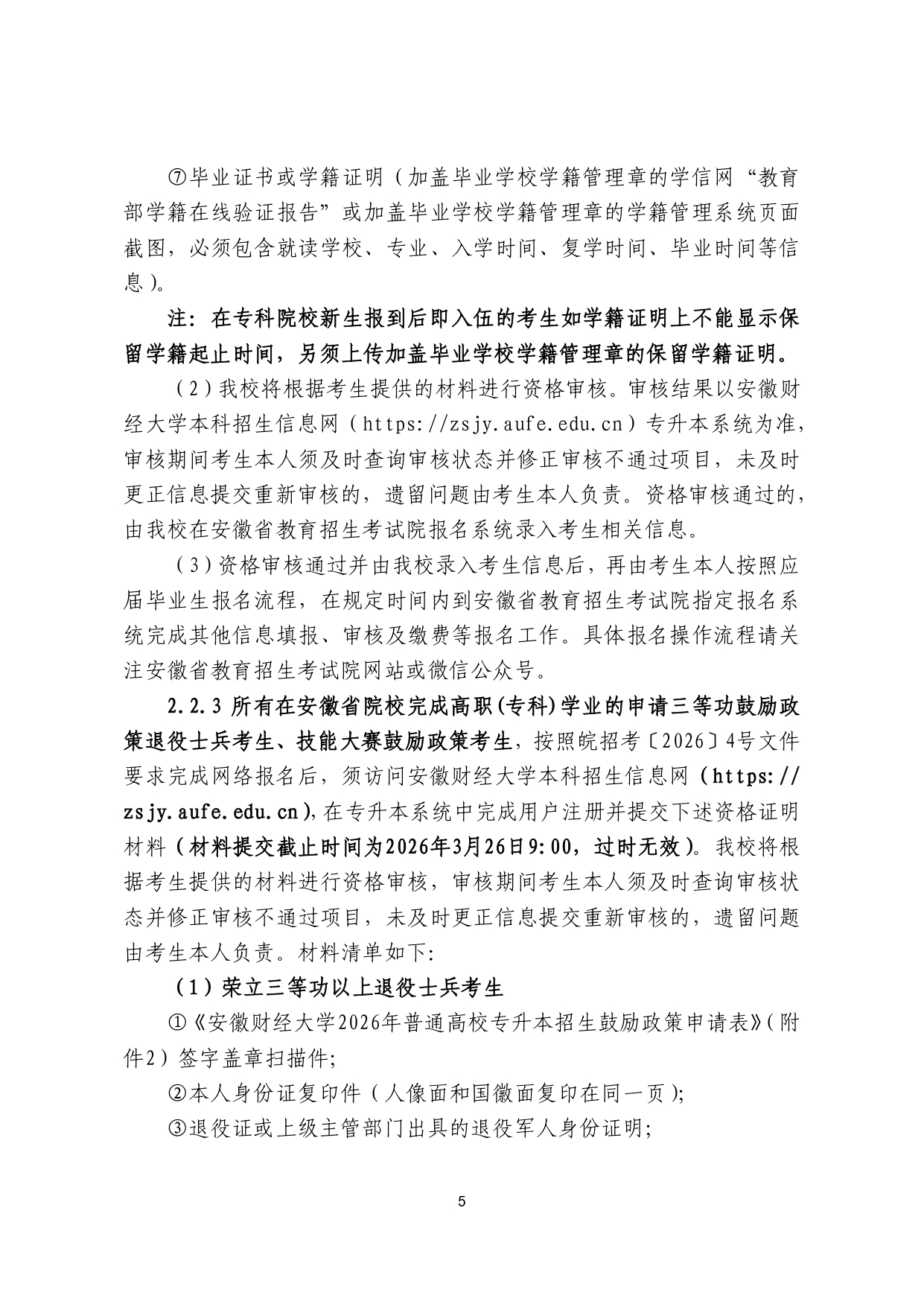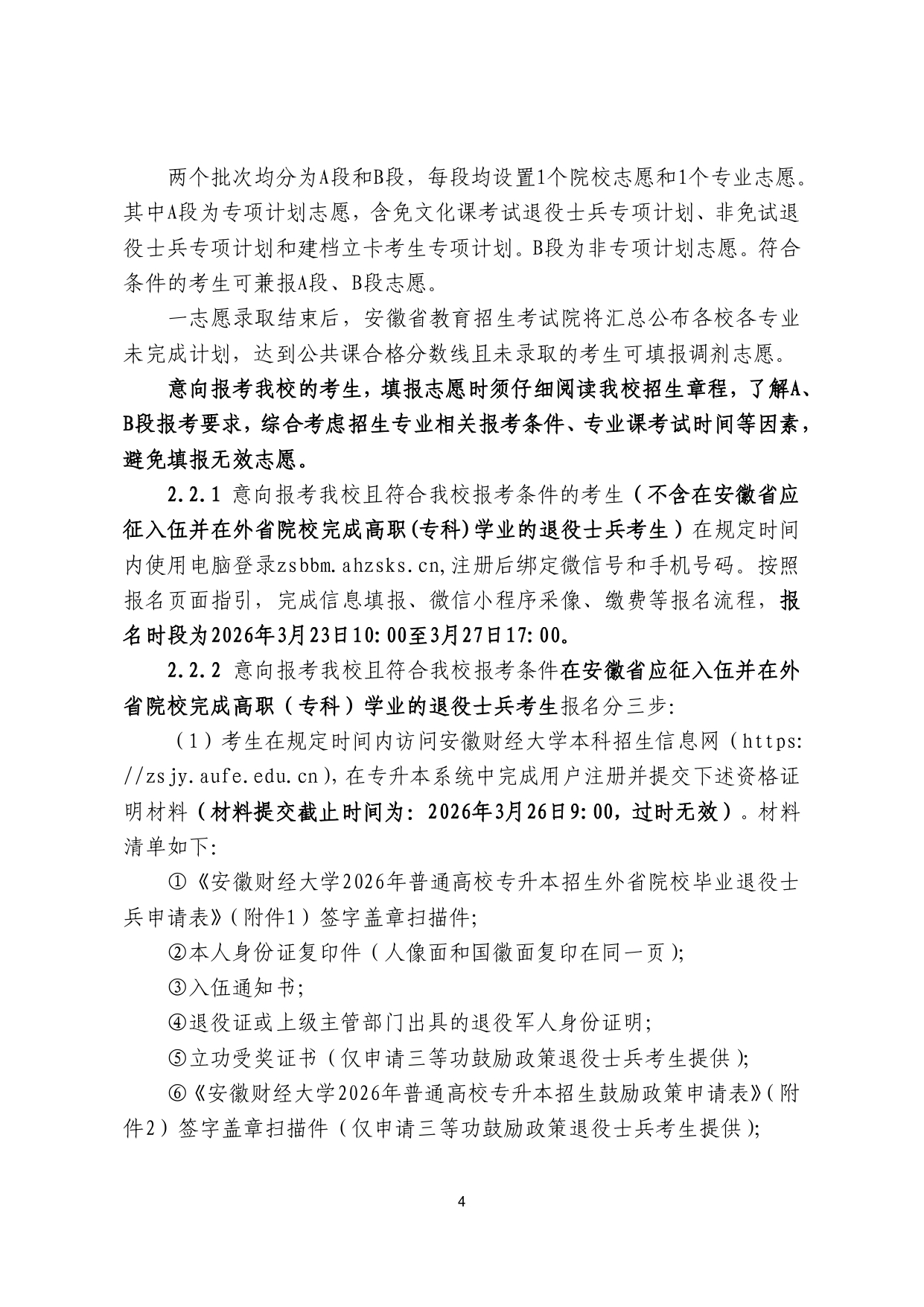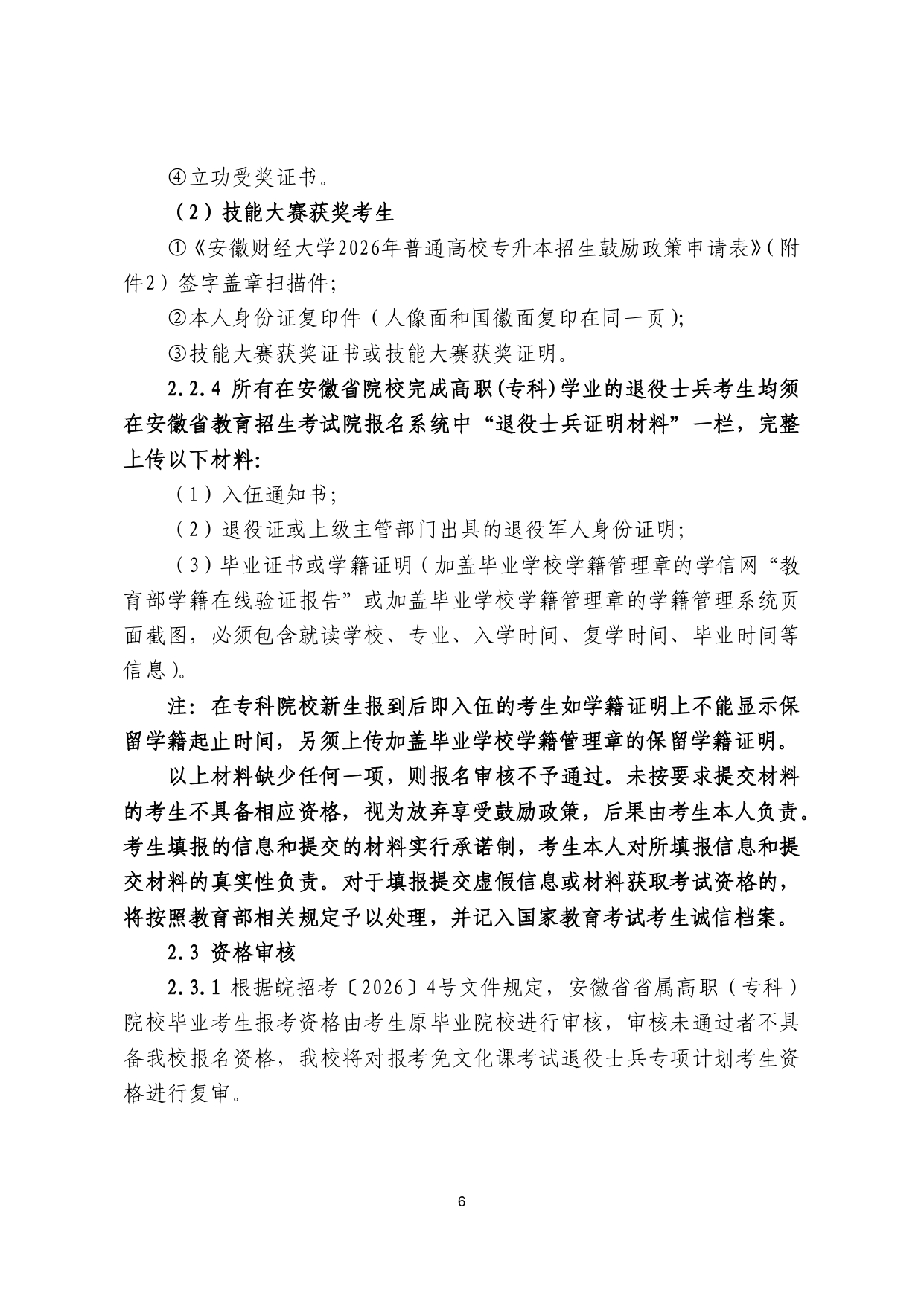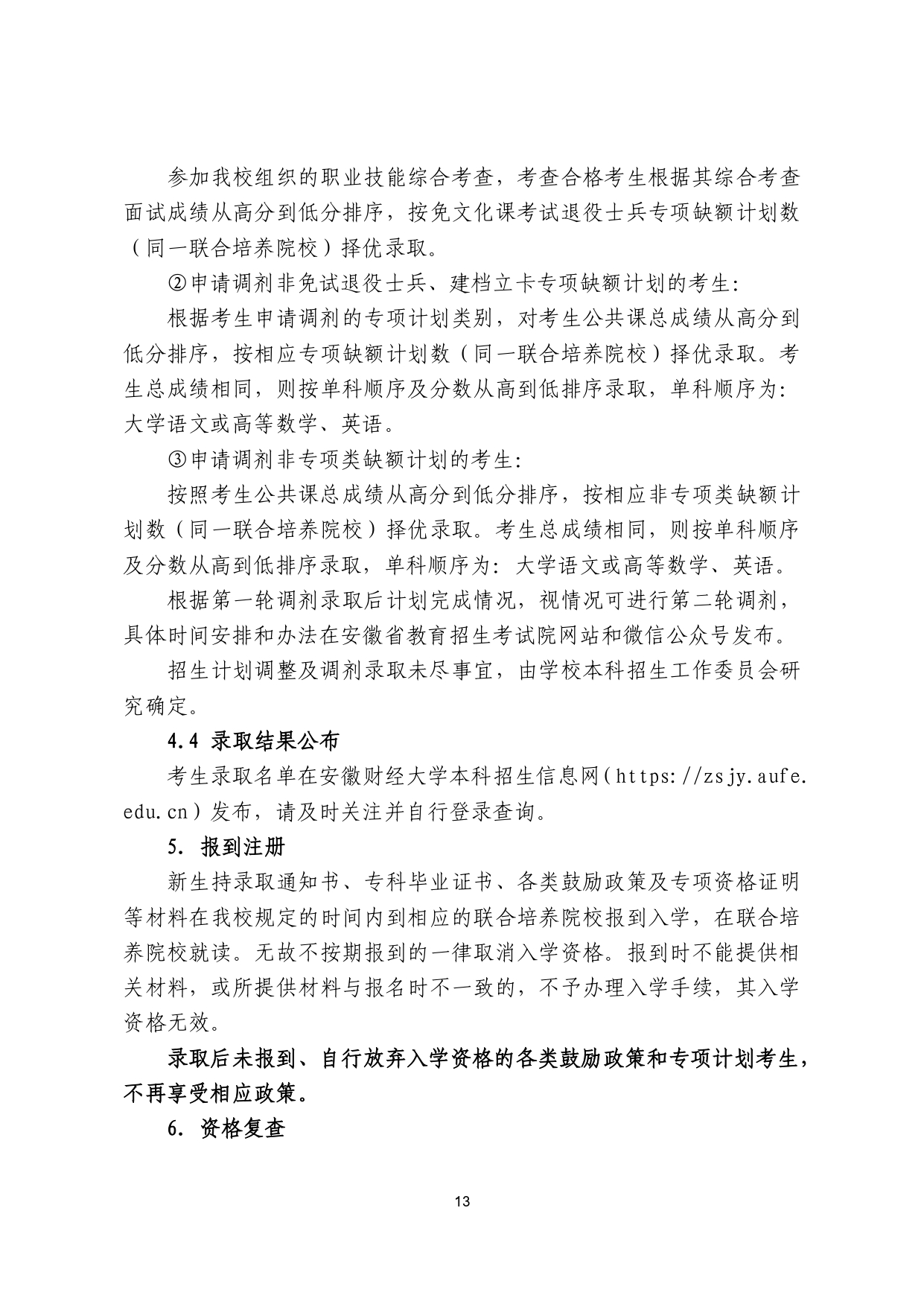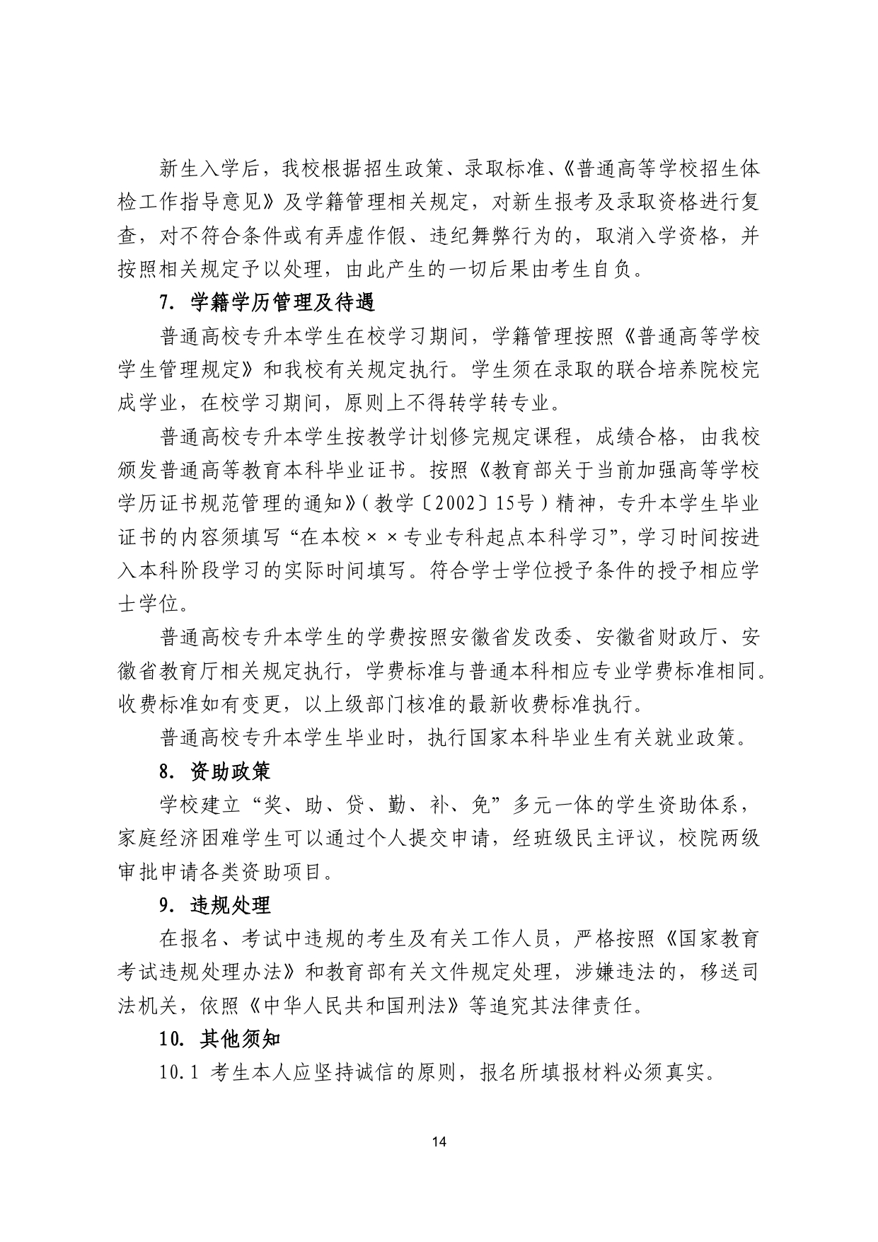 安徽财经大学2026年普通高校专升本 招生章程