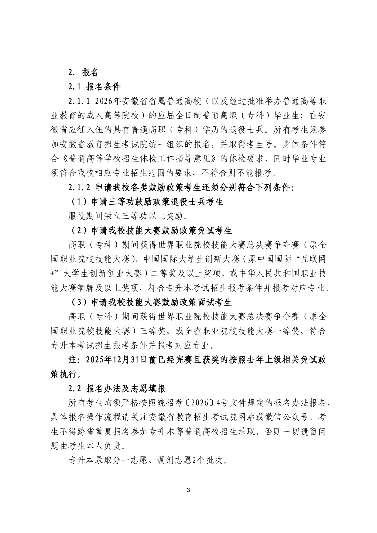 安徽师范大学 2025 年普通高校专升本招生章程